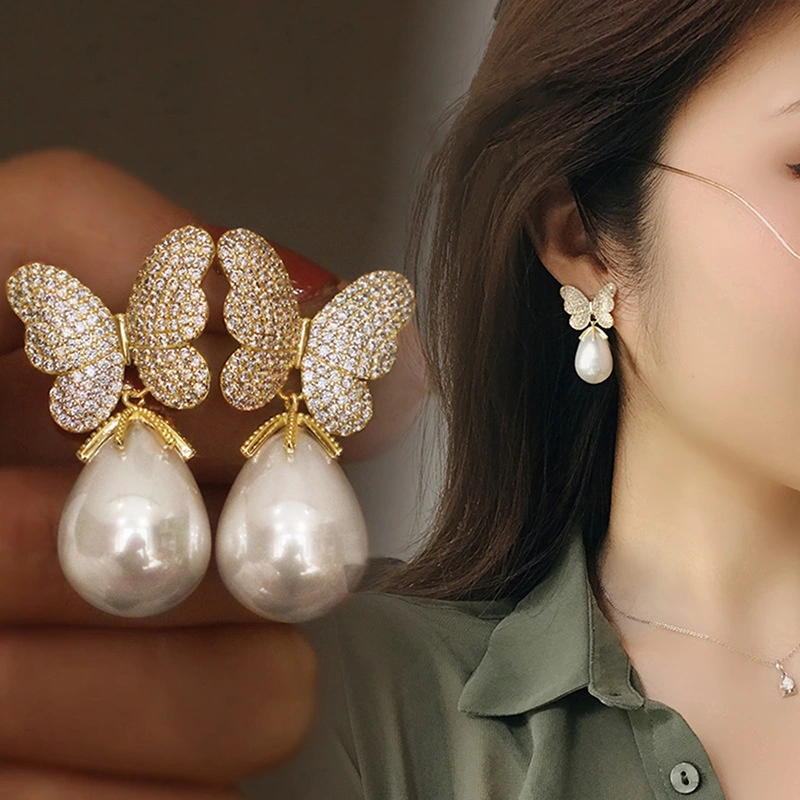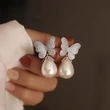 Boucles d'oreilles papillon douces et élégantes pour femmes, version coréenne de forme spéciale, boucles d'oreilles en imitation de perles à la mode et exquises, style tempérament princesse