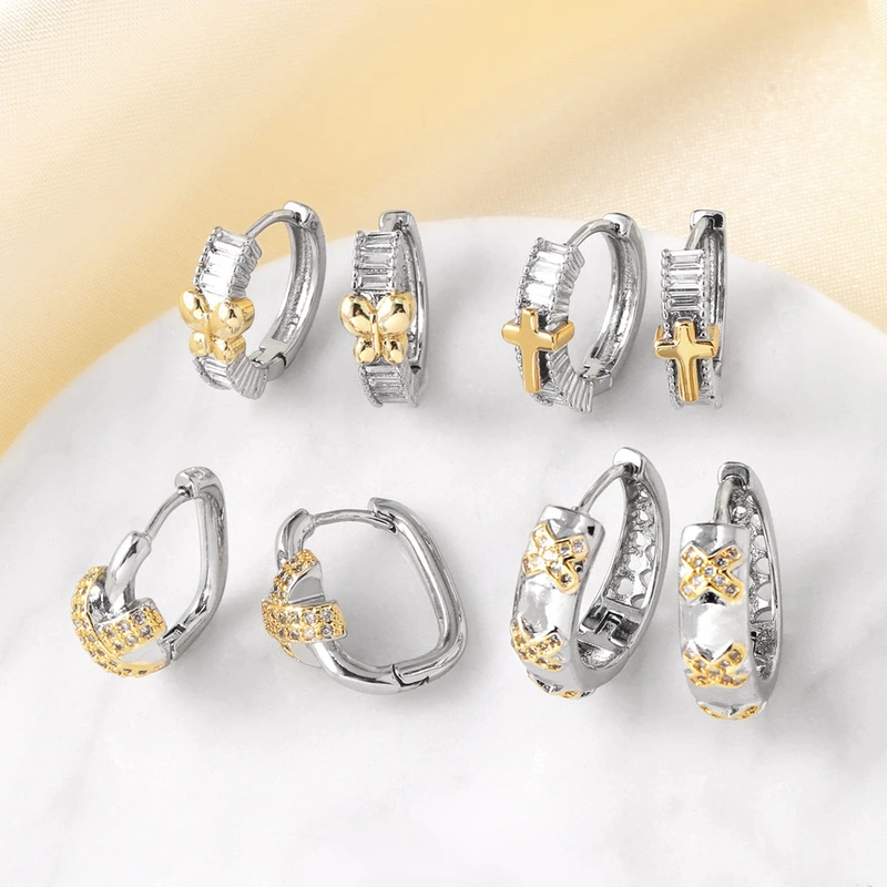 Boucles d'oreilles papillon en or plaqué cuivre 18 carats, bijoux de luxe, design de niche, boucles d'oreilles croix en zircon, erw25