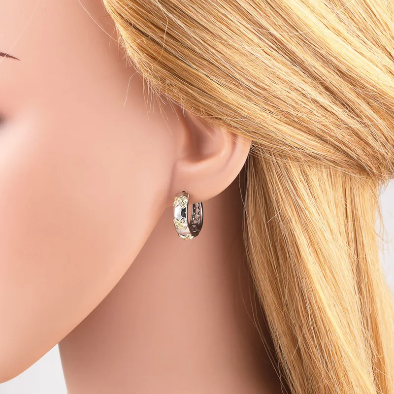 Boucles d'oreilles rétro européennes et américaines en forme de C, grandes boucles d'oreilles rétro en métal avec branches et fleurs, érable bicolore