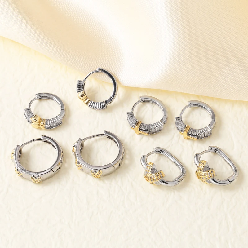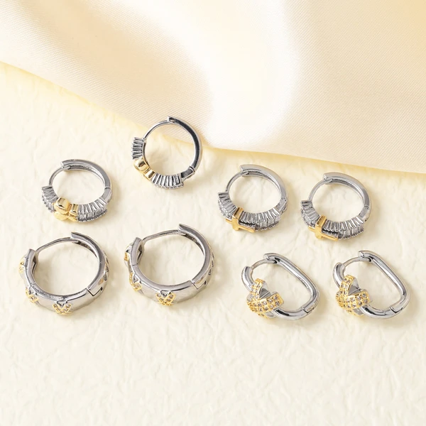 Boucles d'oreilles coréennes élégantes et élégantes, mélange et assortiment de boucles d'oreilles ovales micro-incrustées de zircons scintillants, vente directe d'usine