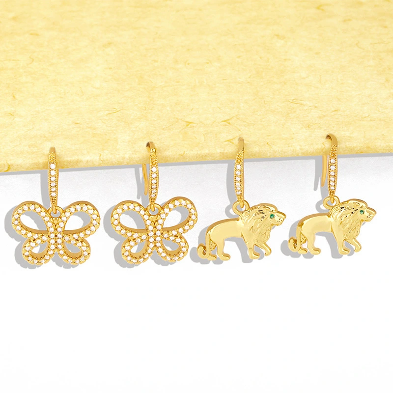 Boucles d'oreilles papillon et lion pour célébrités européennes et américaines, design de niche exagéré et créatif pour femmes, erx72