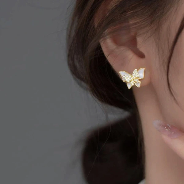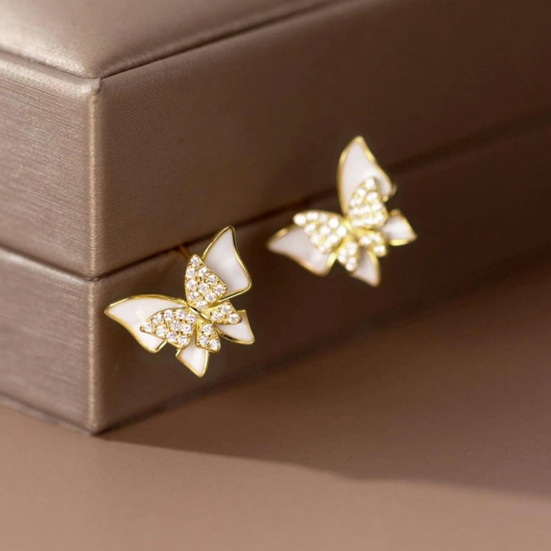 Boucles d'oreilles papillon pour femme, boucles d'oreilles à double papillon avec peinture à l'huile, bijoux pour femme frais et élégants