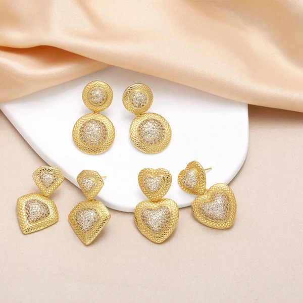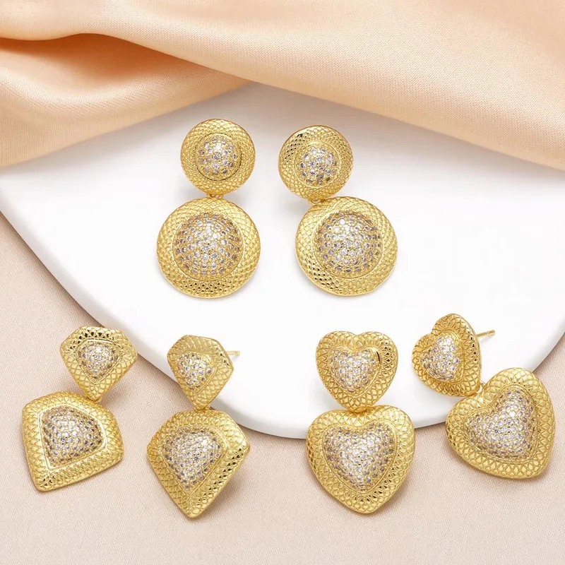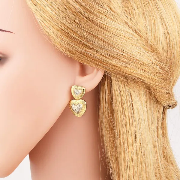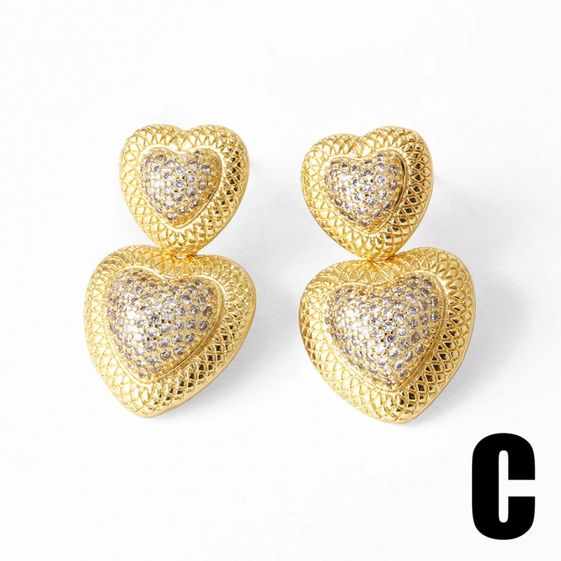 Boucles d'oreilles pendantes en forme de cœur, plaquées or 18 carats, serties de zircons, style bijou, era347