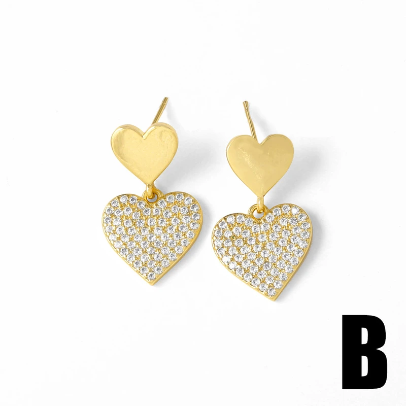 Boucles d'oreilles en forme de cœur brisé en zircon, style cool, tendance, légères, design luxueux, personnalité, tempérament, en forme de cœur