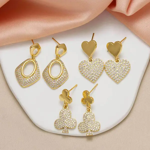 Boucles d'oreilles pendantes en forme de feuille d'amour pour femme, bijoux en plaqué or et zircon, tendance en Europe et aux États-Unis, era396