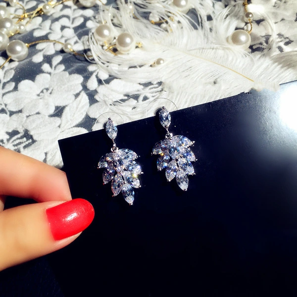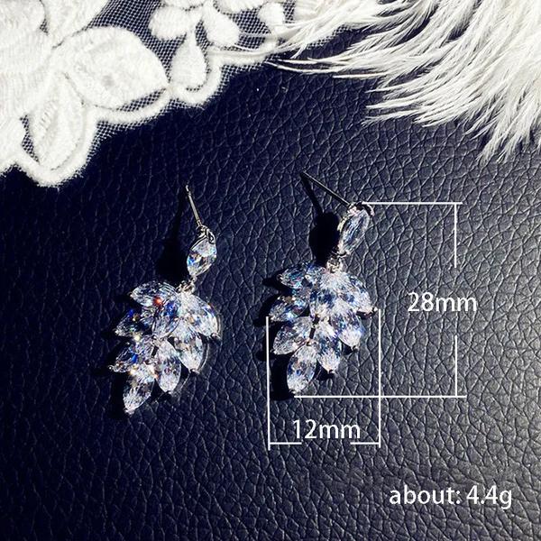 Boucles d'oreilles pendantes en forme de feuille pour mariée, style européen et américain, simples, en zircon, longues, pour robe de mariée, pour femmes