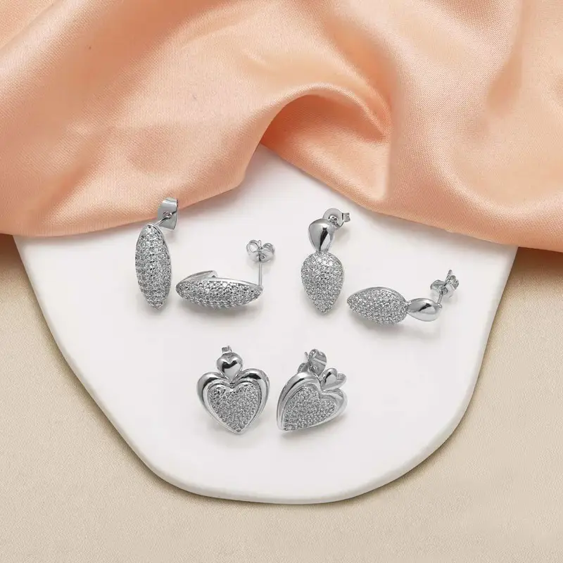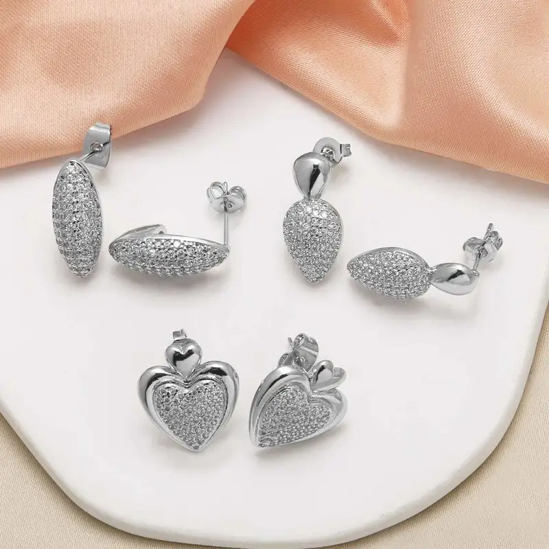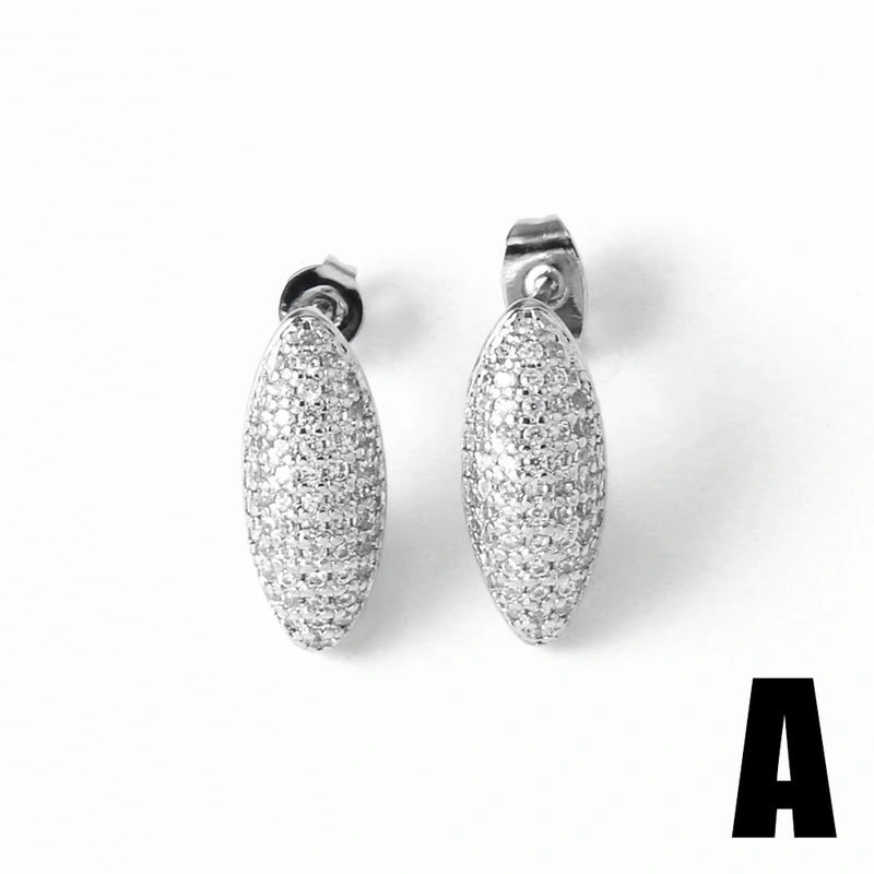 Boucles d'oreilles coréennes élégantes et élégantes, mélange et assortiment de boucles d'oreilles ovales micro-incrustées de zircons scintillants, vente directe d'usine