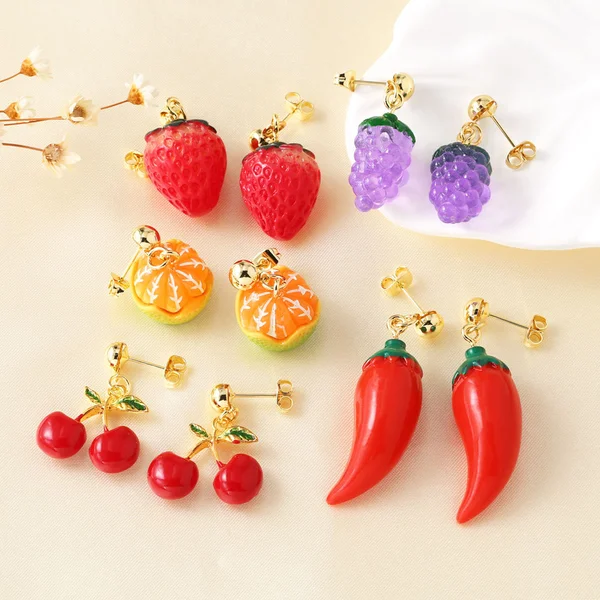 Boucles d'oreilles pendantes en forme de goutte d'huile pour femme, bijoux tendance, fruits, cerises, fraises, raisin, era269