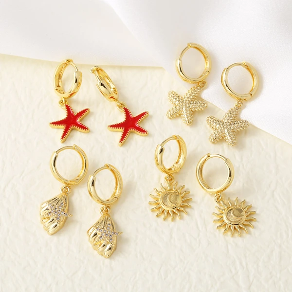 Boucles d'oreilles pendantes en forme d'étoile de mer et de soleil, plaquées or 18 carats, bijoux tendance pour femmes, era337