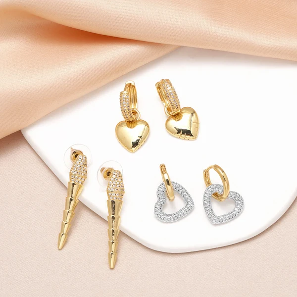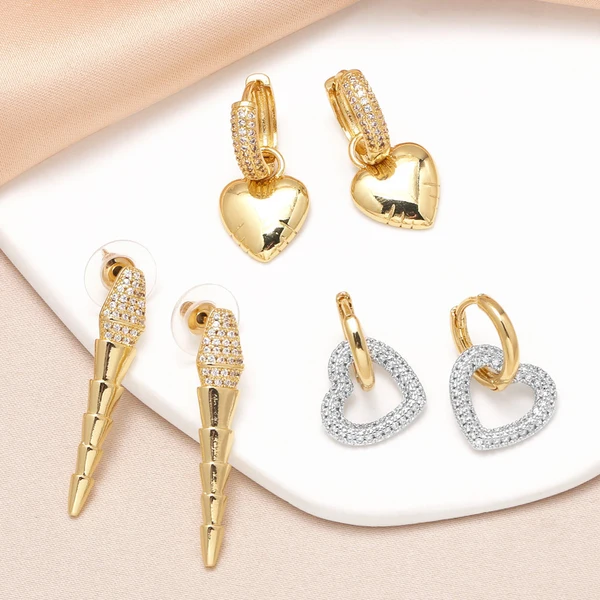 Boucles d'oreilles pendantes en zircon plaqué or 18 carats pour femme, bijoux tendance en Europe et aux États-Unis, motif cœur pêche, era387
