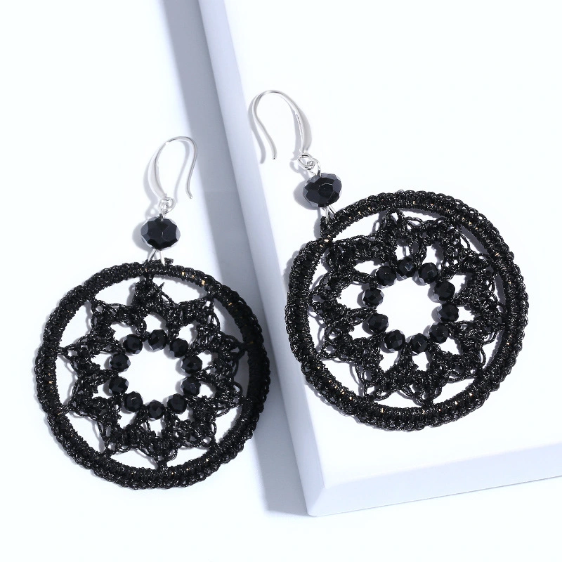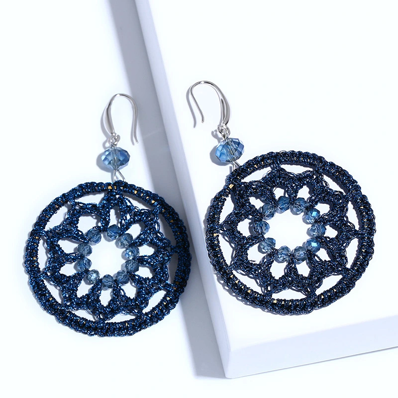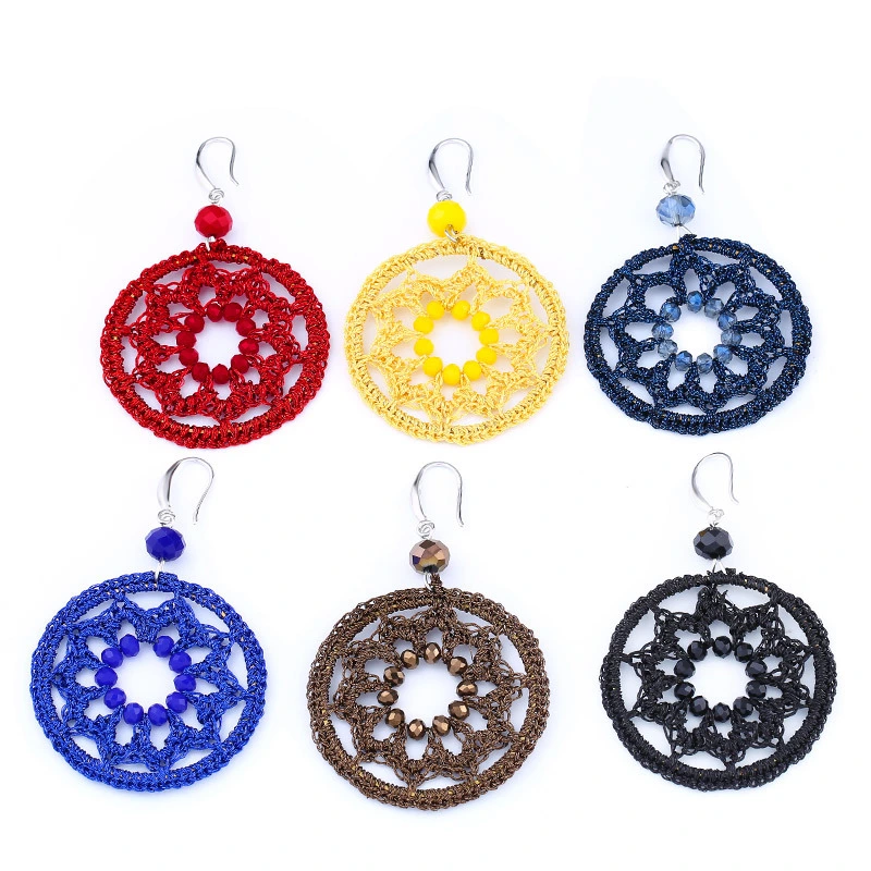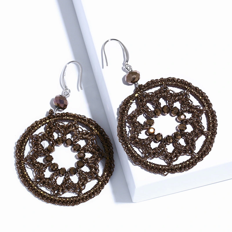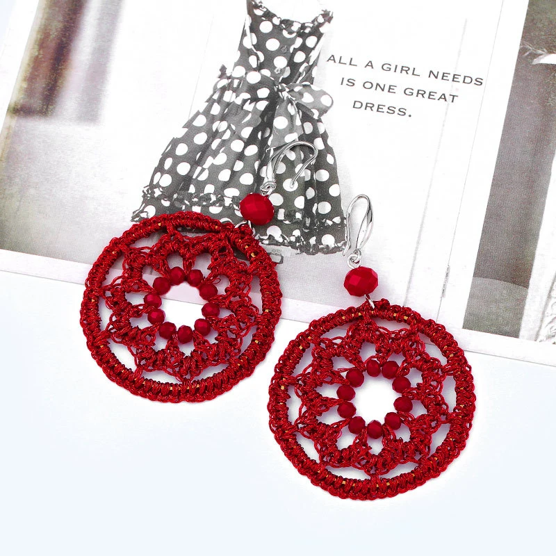 Boucles d'oreilles pendantes rondes géométriques tissées à la main, style bohème européen et américain, pumeng.com, pour femmes, ern79