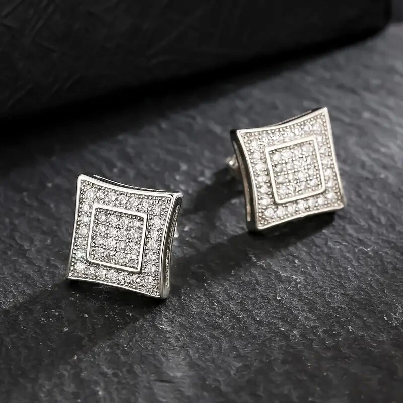 Boucles d'oreilles personnalisées de nouveau style, boucles d'oreilles tridimensionnelles simples et polyvalentes en zircon entièrement en diamant pour femmes, nouvelles boucles d'oreilles carrées européennes et américaines