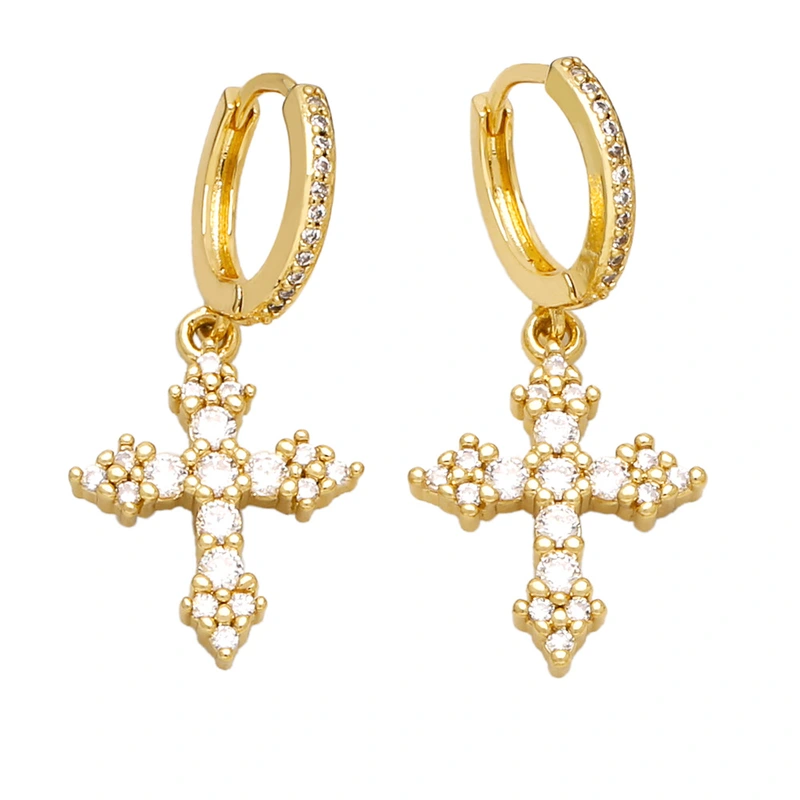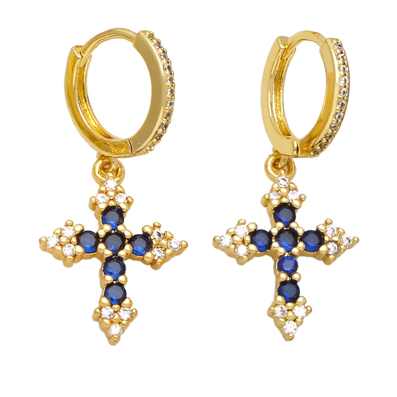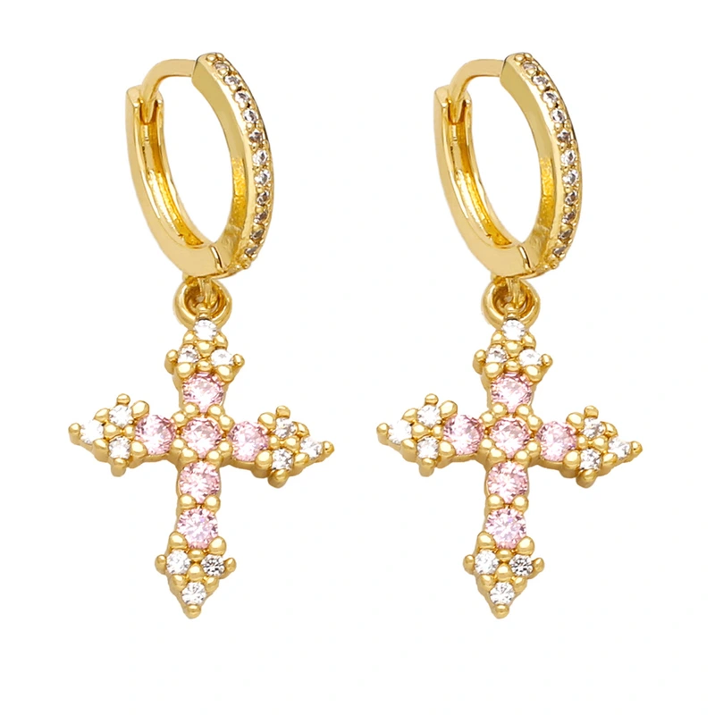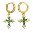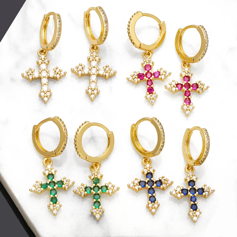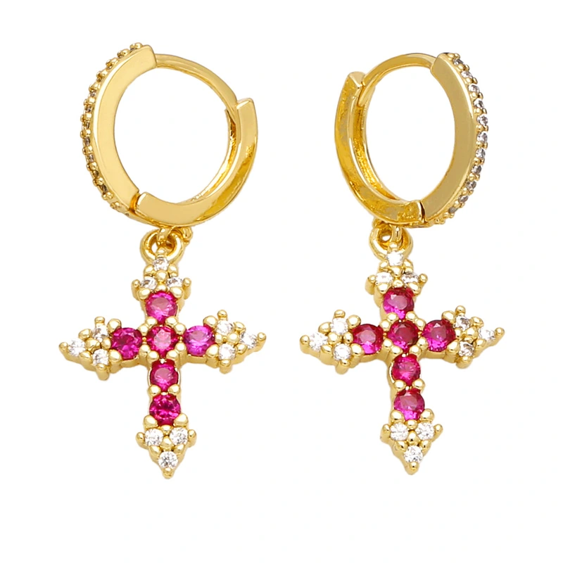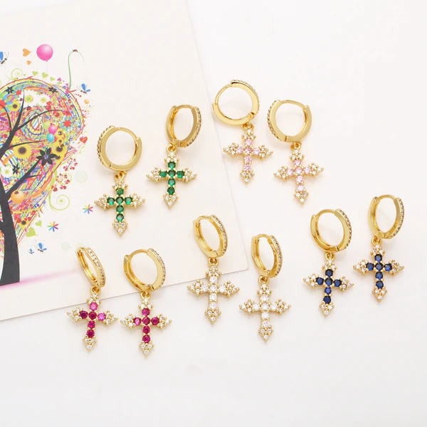 Boucles d'oreilles polyvalentes à la mode pour femmes, bijoux européens et américains très populaires, incrustées de croix en zircon coloré, eru28