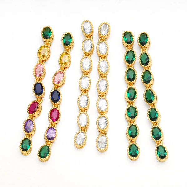 Boucles d'oreilles coréennes élégantes et élégantes, mélange et assortiment de boucles d'oreilles ovales micro-incrustées de zircons scintillants, vente directe d'usine