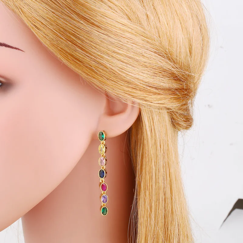 Boucles d'oreilles rétro à pampilles longues et diamants, style européen et américain, exagérées, pour femmes, ERQ12
