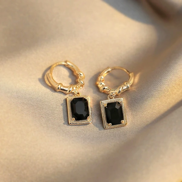 Boucles d'oreilles rétro en zircon noir pour femmes, style palais français, légères, luxueuses, design de niche, tempérament, boucles d'oreilles populaires