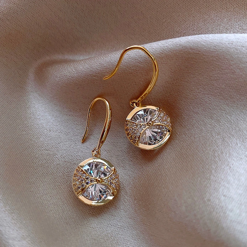 Boucles d'oreilles coréennes exquises en micro-incrusté de zircon, super brillantes, polyvalentes au quotidien, boucles d'oreilles de luxe haut de gamme légères fabricant source