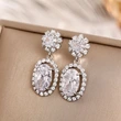 Boucles d'oreilles coréennes élégantes et élégantes, mélange et assortiment de boucles d'oreilles ovales micro-incrustées de zircons scintillants, vente directe d'usine