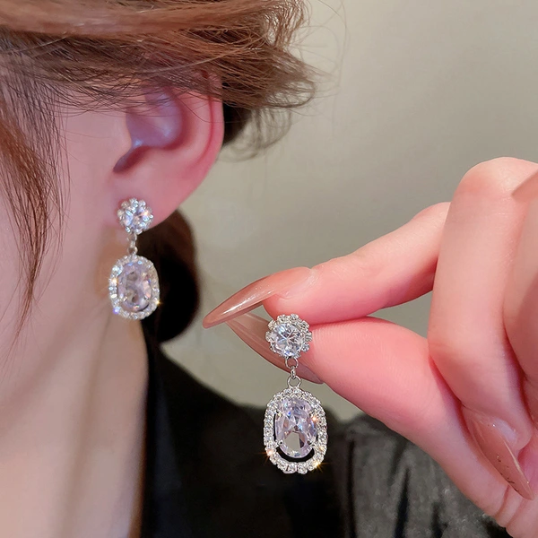 Boucles d'oreilles coréennes exquises en micro-incrusté de zircon, super brillantes, polyvalentes au quotidien, boucles d'oreilles de luxe haut de gamme légères fabricant source