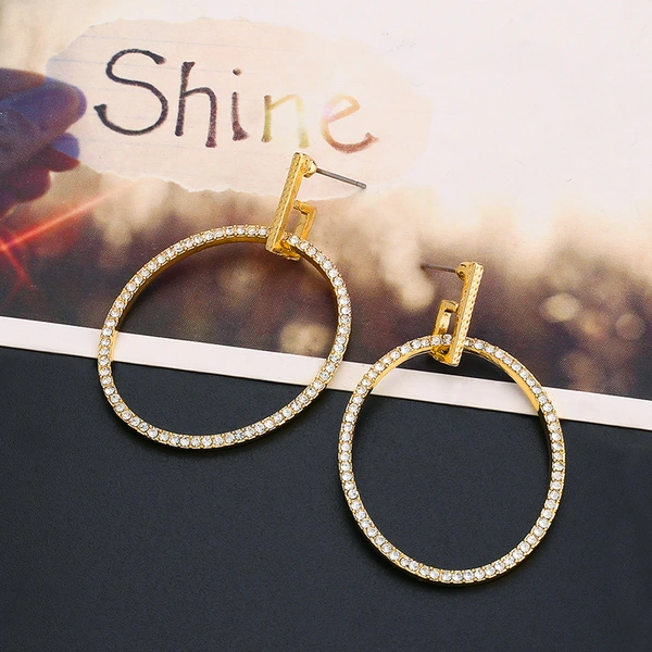 Boucles d'oreilles rondes en diamant, nouvelles, élégantes et super brillantes, de style tendance, pour femmes