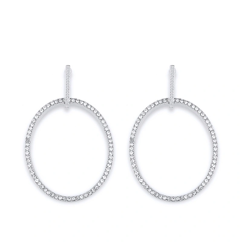 Boucles d'oreilles coréennes élégantes et élégantes, mélange et assortiment de boucles d'oreilles ovales micro-incrustées de zircons scintillants, vente directe d'usine