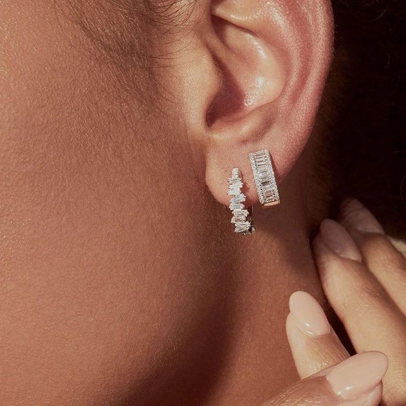 Boucles d'oreilles robustes entièrement incrustées, boucles d'oreilles luxueuses en forme de C en forme de cœur, boucles d'oreilles de mode européennes et américaines, 2024