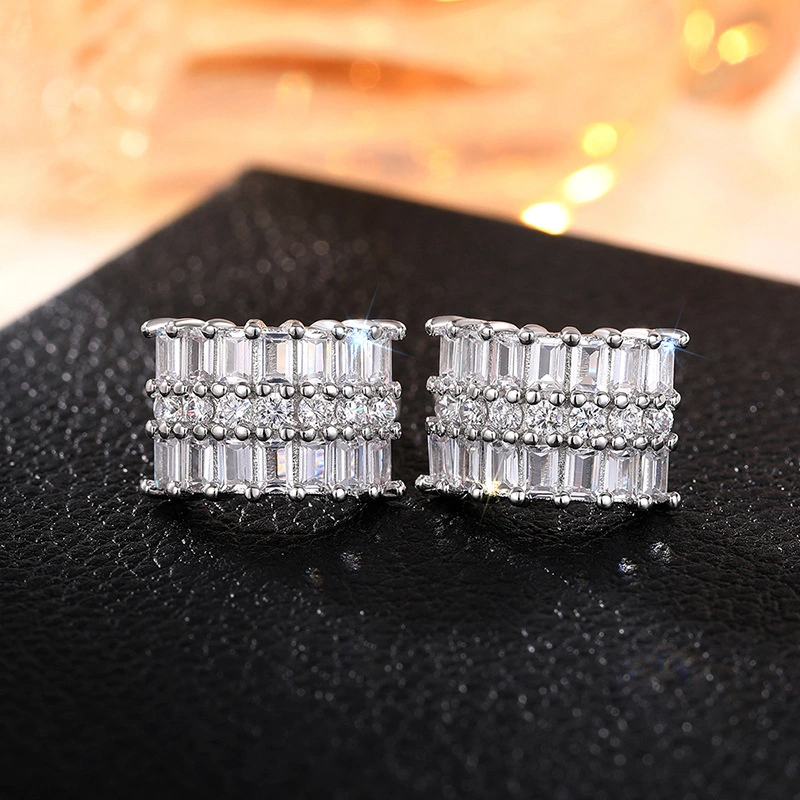 Boucles d'oreilles coréennes exquises en micro-incrusté de zircon, super brillantes, polyvalentes au quotidien, boucles d'oreilles de luxe haut de gamme légères fabricant source