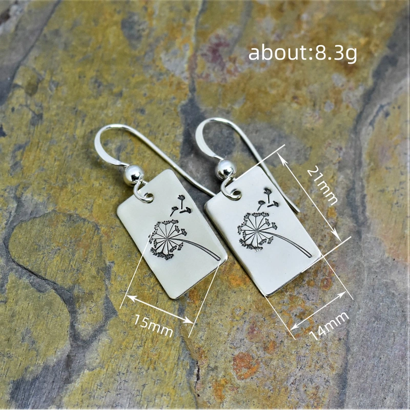 Boucles d'oreilles simples rétro rectangulaires en forme de pissenlit, boucles d'oreilles tendance pour modifier la forme du visage, crochets d'oreilles féminins