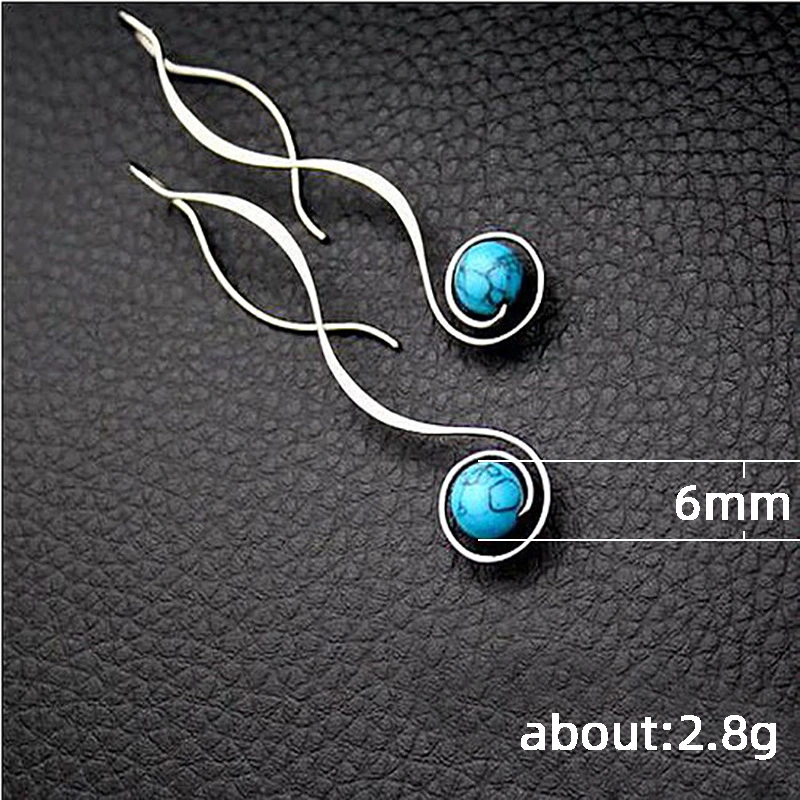 Boucles d'oreilles style nouveau, boucles d'oreilles longues turquoise rétro simples, boucles d'oreilles mode populaires pour les célébrités d'Internet, vente en gros