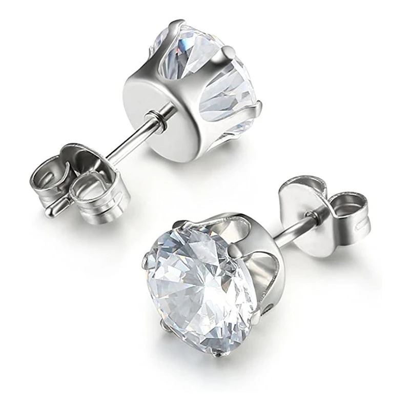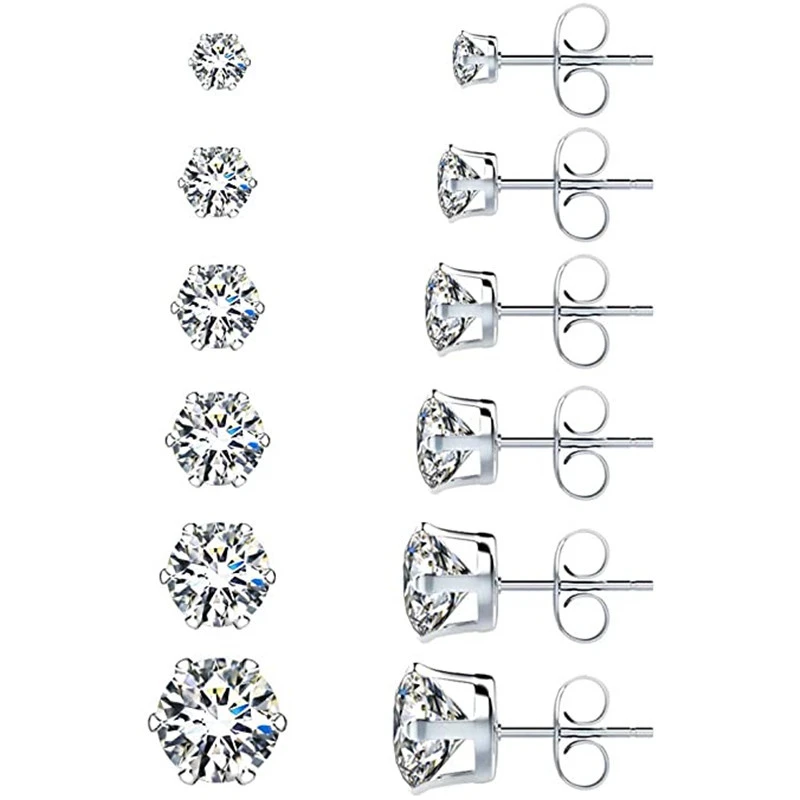 Boucles d'oreilles tendance en diamant et zircon, griffes hexagonales simples, style décontracté