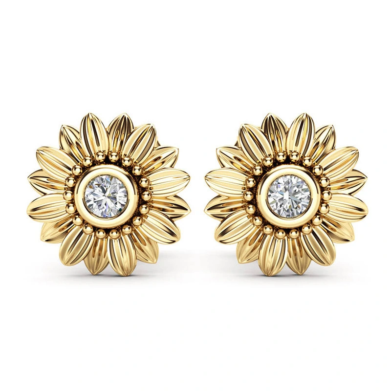 Boucles d'oreilles tournesol créatives en argent et plaqué or pour femmes, tendance et tendance