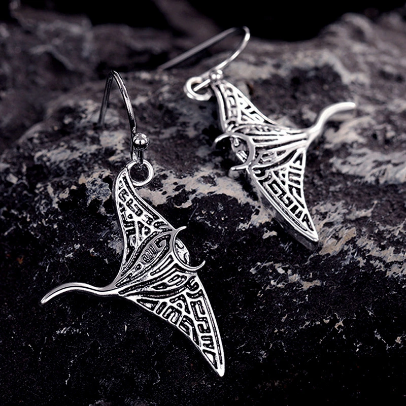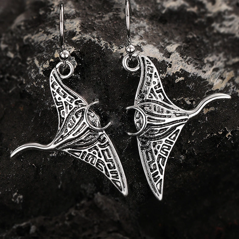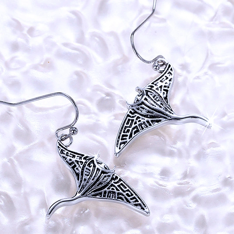 Boucles d'oreilles vintage en alliage pour femmes, bijoux texturés en raie manta, simulation animale, rétro, bijoux très populaires