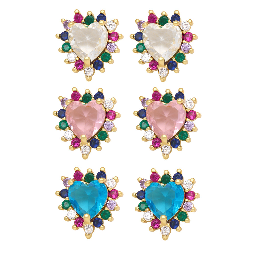 Boucles d'oreilles en forme de cœur, style européen et américain, micro-incrustées de zircons colorés, vente en gros, era213