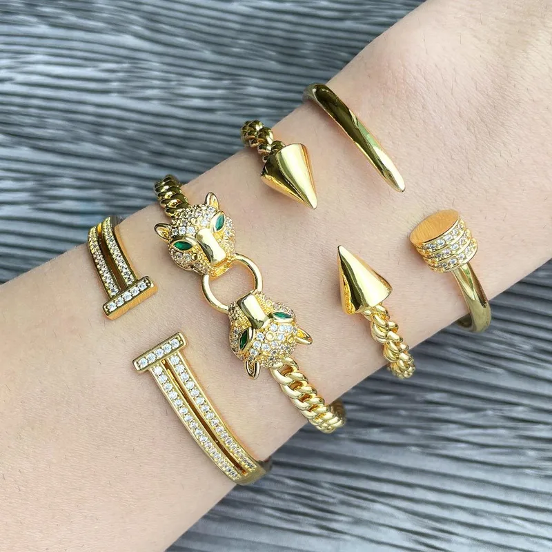 Bracelet à ongles de tempérament de mode populaire européen et américain, personnalité féminine exagérée hip-hop ouvert tête de léopard bijoux à la main brh40