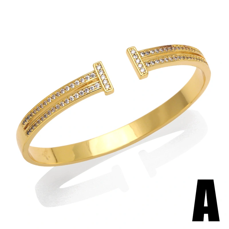 Bracelet en or véritable plaqué cuivre, entièrement en zirconium, 26 lettres anglaises, bijoux ajustables, brm62