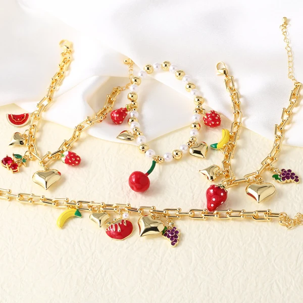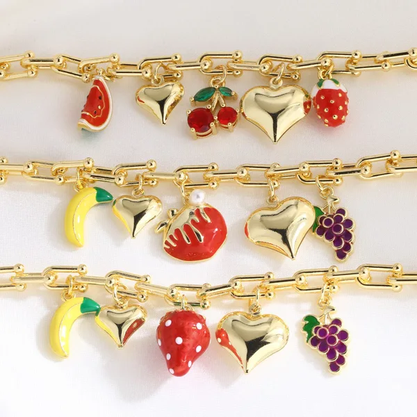 Bracelet chaîne en forme de U pour femme, design de niche, fruits et fraises, design européen et américain, tendance, BRB90