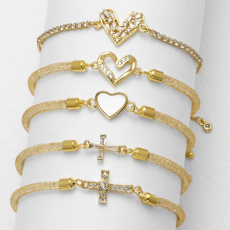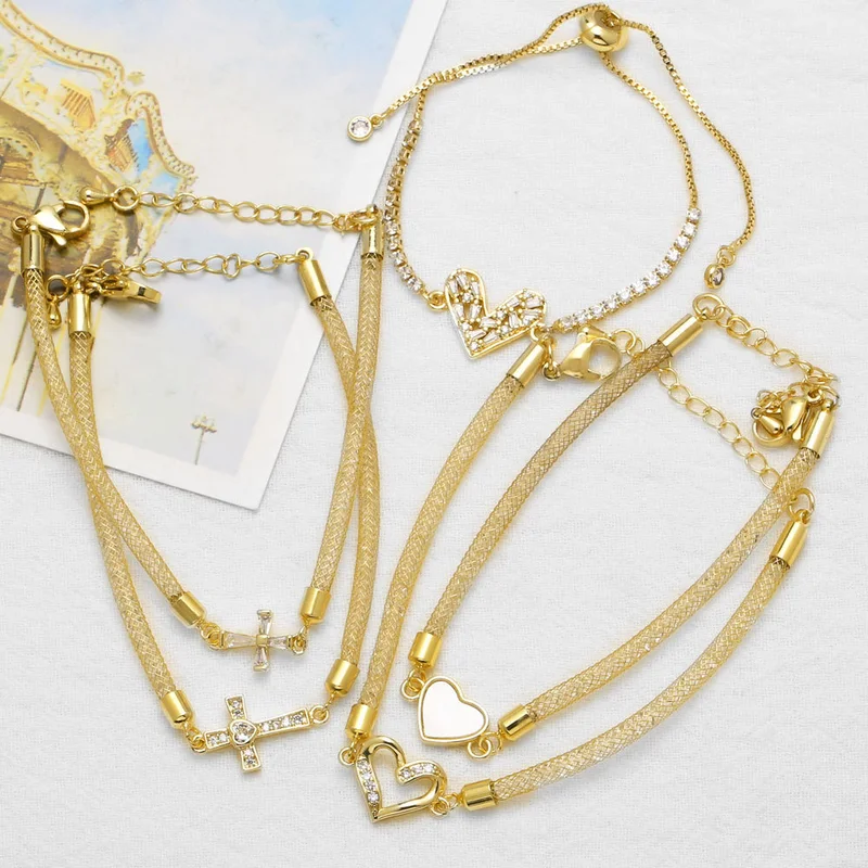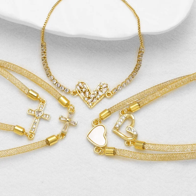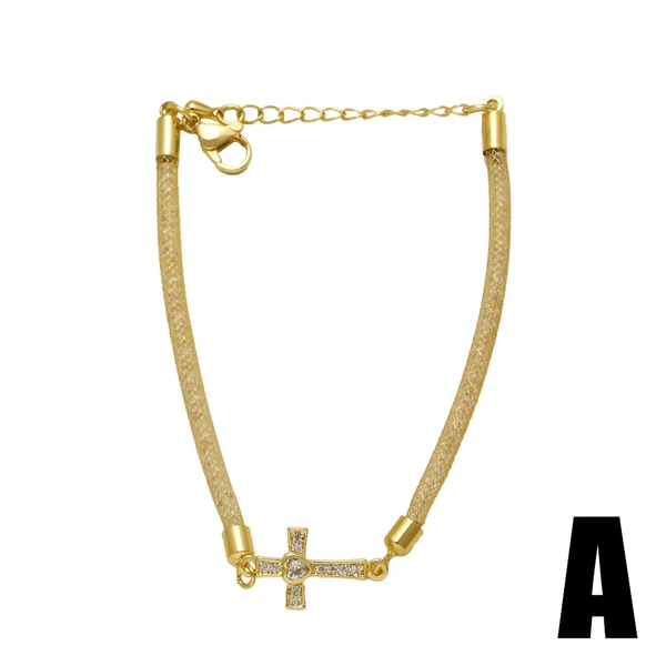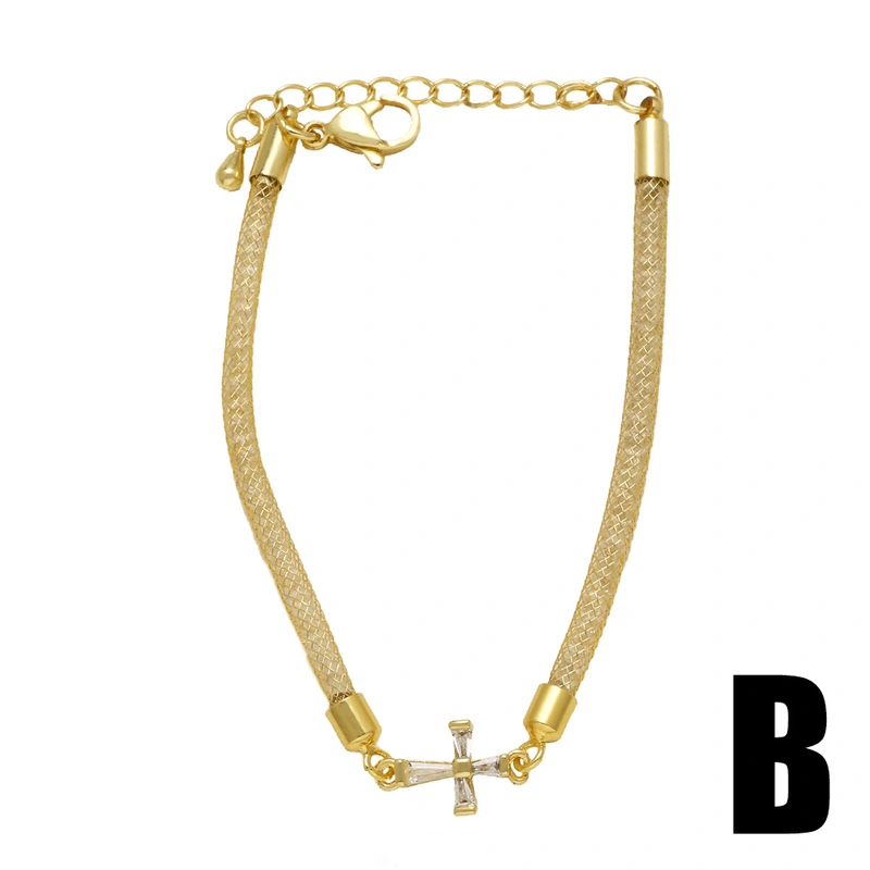 Bracelet croix d'amour en or 18 carats plaqué cuivre pour femme, bijou tendance, brn08