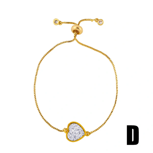 Bracelet en or véritable plaqué cuivre, entièrement en zirconium, 26 lettres anglaises, bijoux ajustables, brm62
