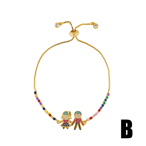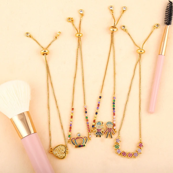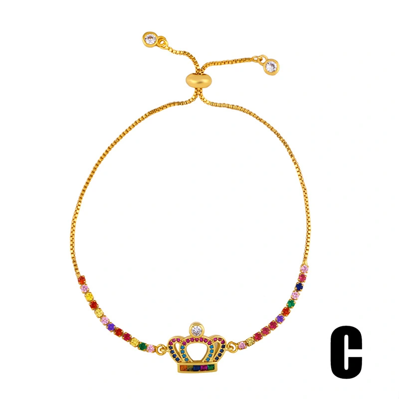 Bracelet diamant européen et américain brillant, bijoux à main en zircon coloré, bracelet couronne croix cœur pêche, vente en gros, brb78