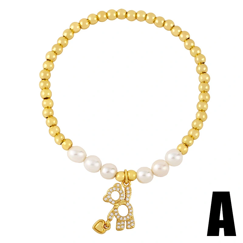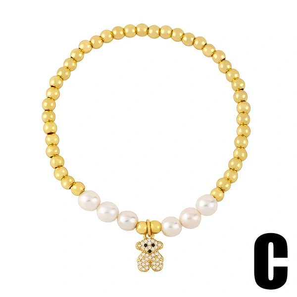 Bracelet élastique en perles de style coréen pour femme, motif smiley, avec perles, ours en peluche, brd24