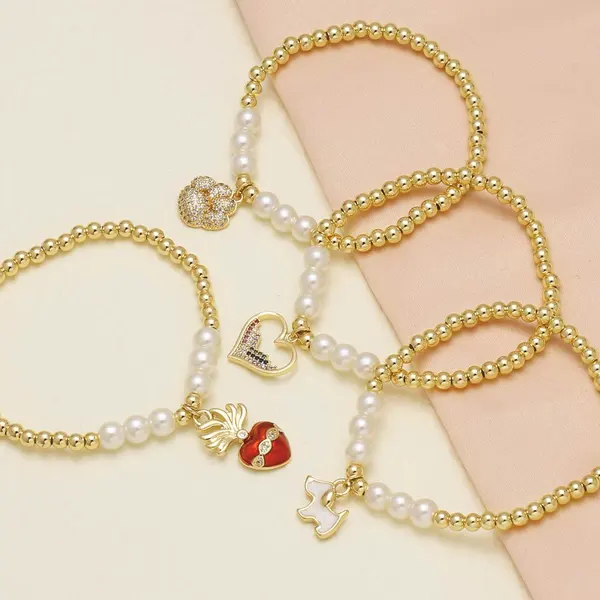 Bracelet en forme de cœur avec perles et zircons plaqués or pour femme, bijou tendance en Europe et aux États-Unis, idéal pour les griffes de chien, brb61