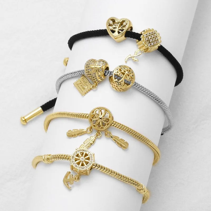 Bracelet en or 18 carats plaqué cuivre avec pendentif arbre de vie et zircons, très populaire, brn05