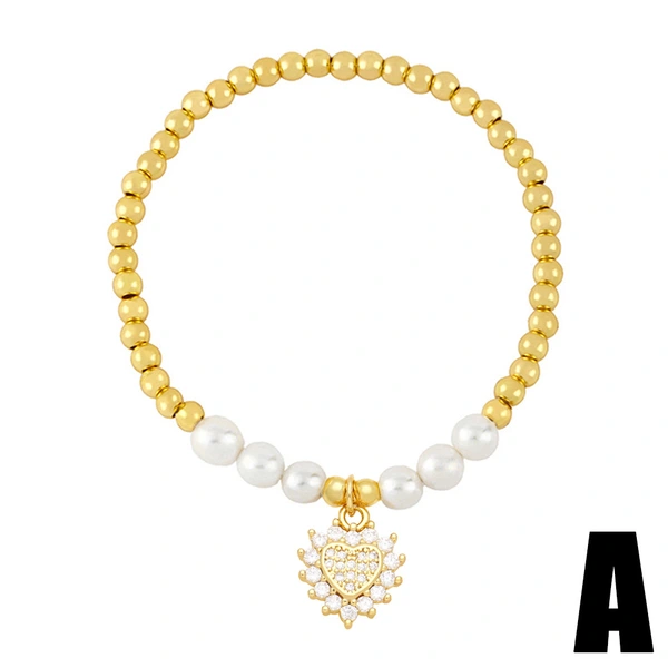 Bracelet 26 lettres anglaises pour femmes, perles de cuivre européennes et américaines, bracelet élastique en perles, bracelet à lettres couronne tendance, brf80