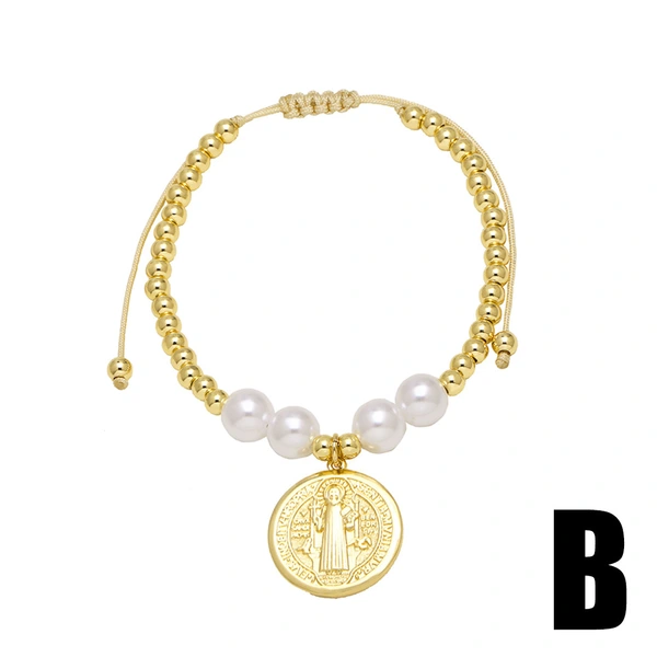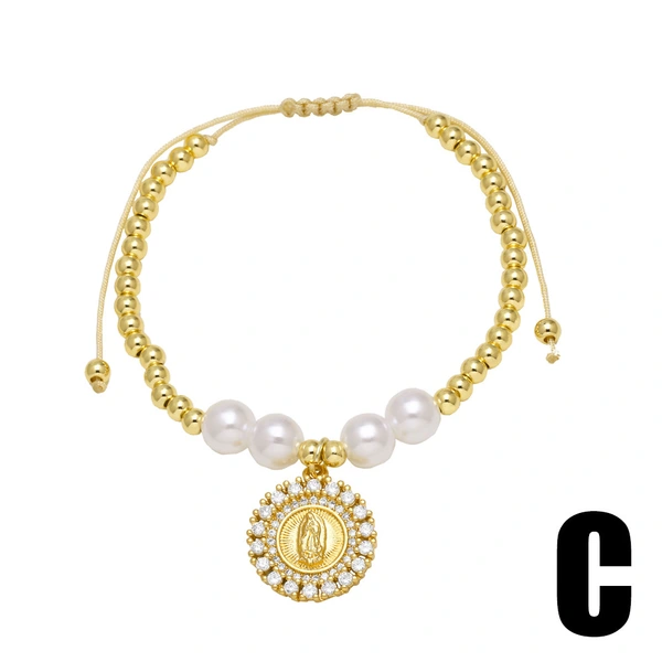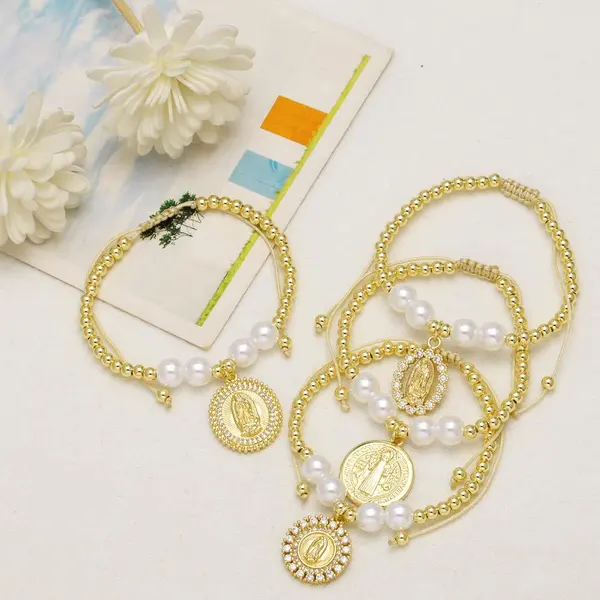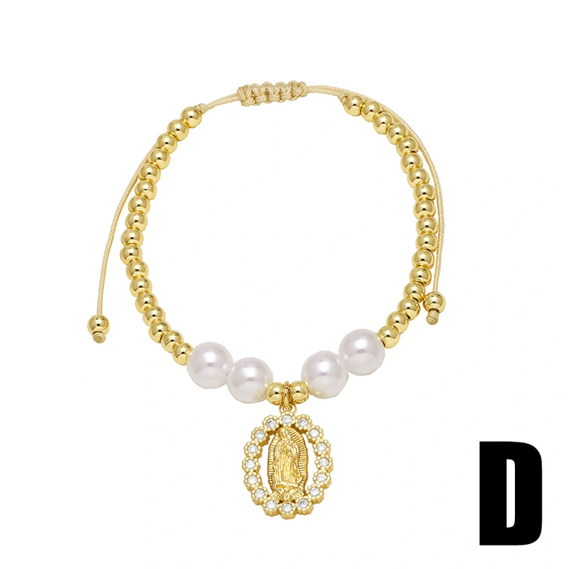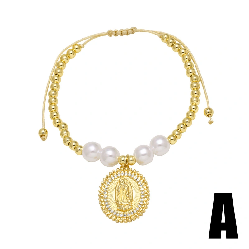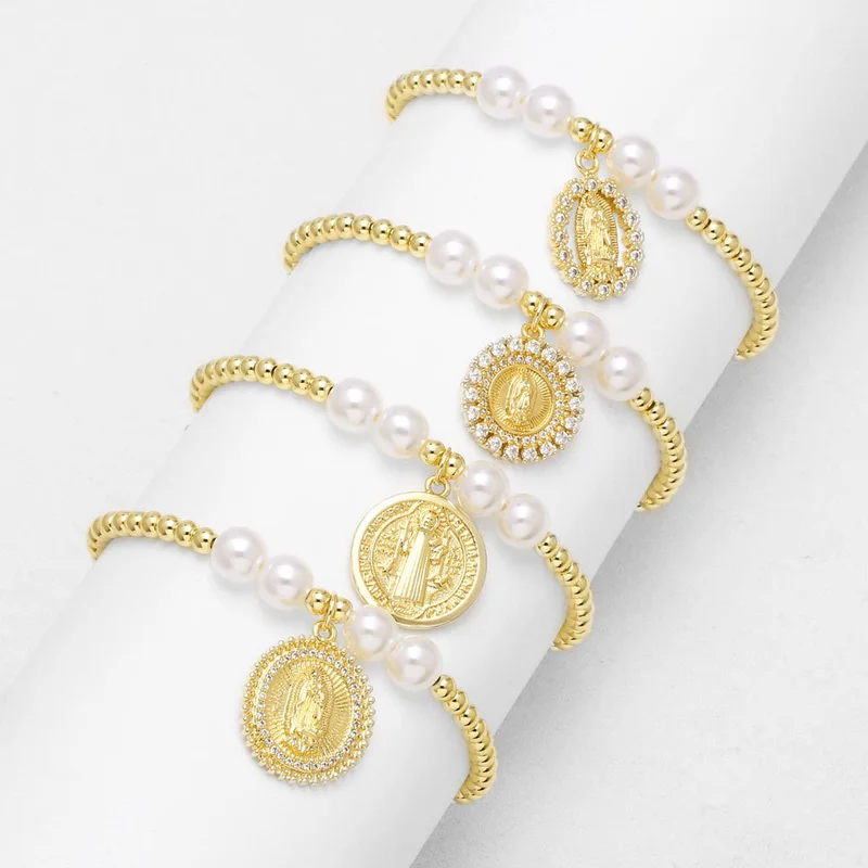 Bracelet en perles de la Vierge Marie plaqué or pour femme, bijou tendance en Europe et aux États-Unis, brc71