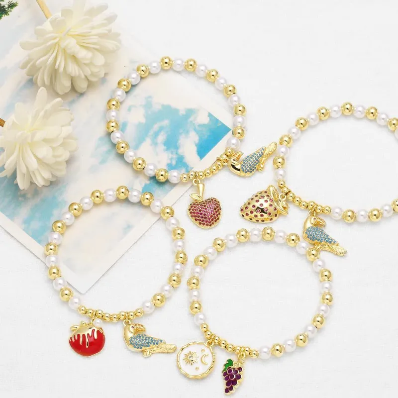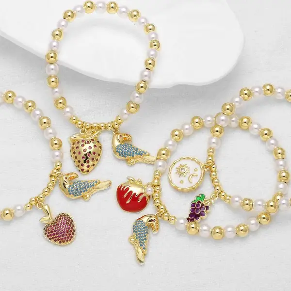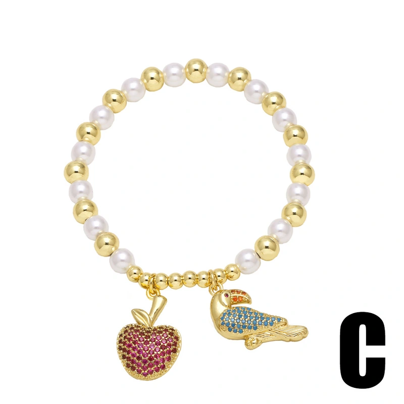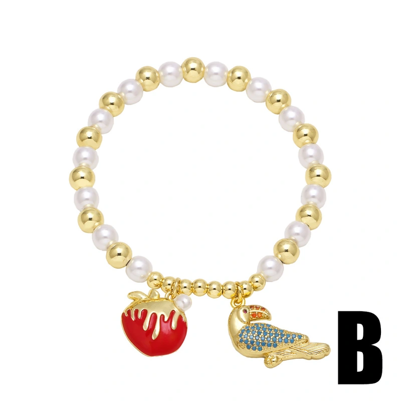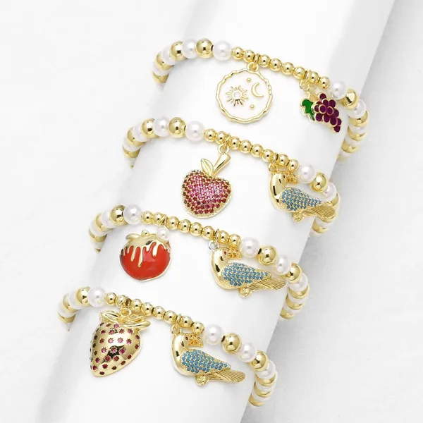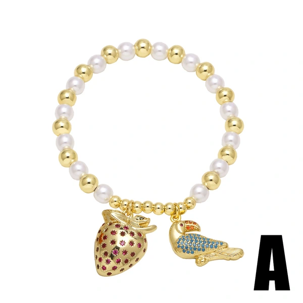 Bracelet en perles de pêche et de fraise pour femme, bijou européen et américain en zirconium, idéal comme cadeau, brm79