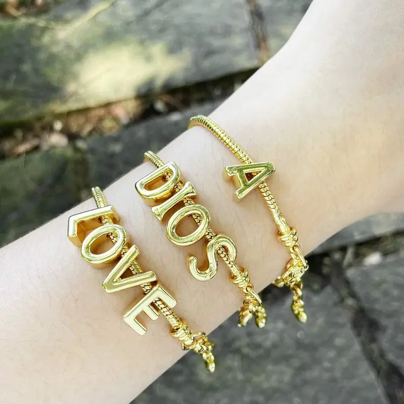 Bracelet en plaqué or brillant avec 26 lettres anglaises, bijouterie artisanale, vente en gros, bre33