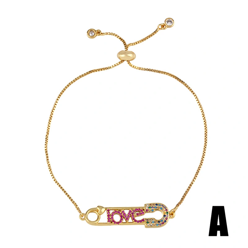 Bracelet d'amour en or 18 carats plaqué cuivre et zircon, 26 lettres anglaises, bijoux européens et américains, très populaires, brh51