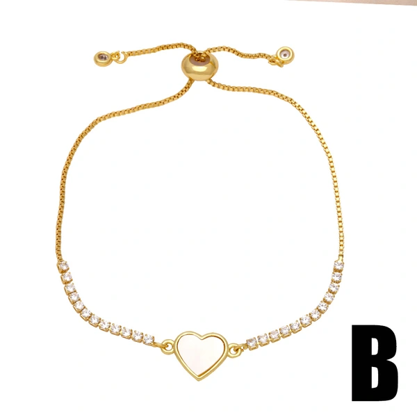Bracelet en or véritable plaqué cuivre, entièrement en zirconium, 26 lettres anglaises, bijoux ajustables, brm62