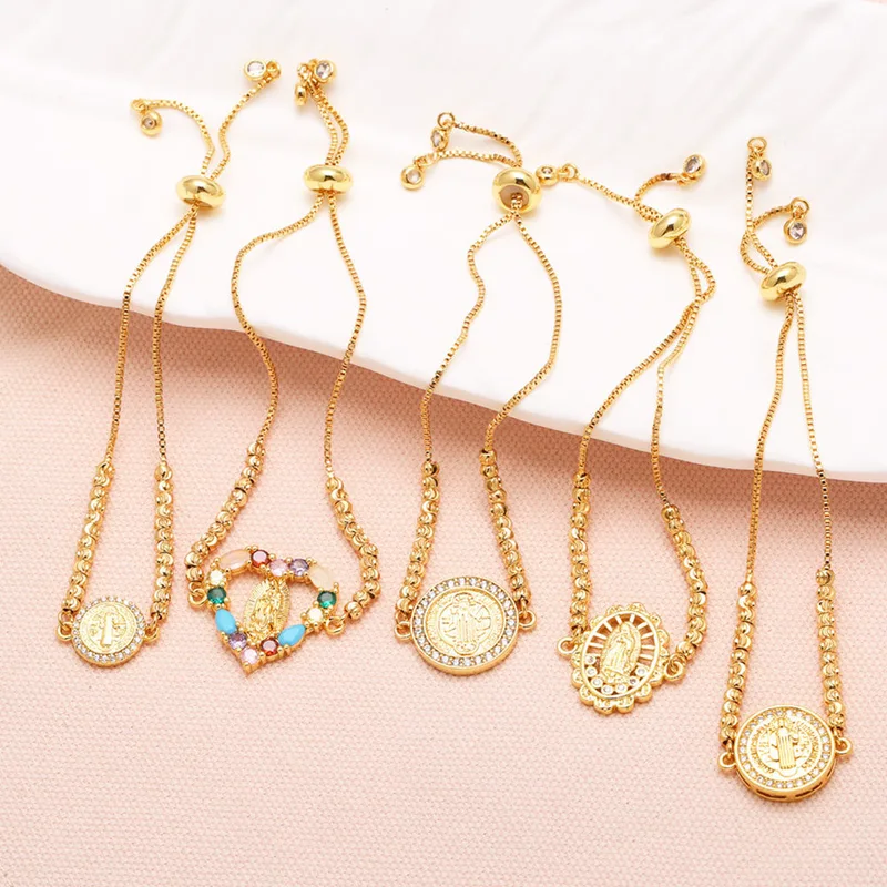 Bracelet Love Madonna plaqué or pour femme, bijou tendance européen et américain, bracelet en zircon coloré incrusté, brh54