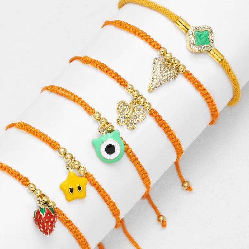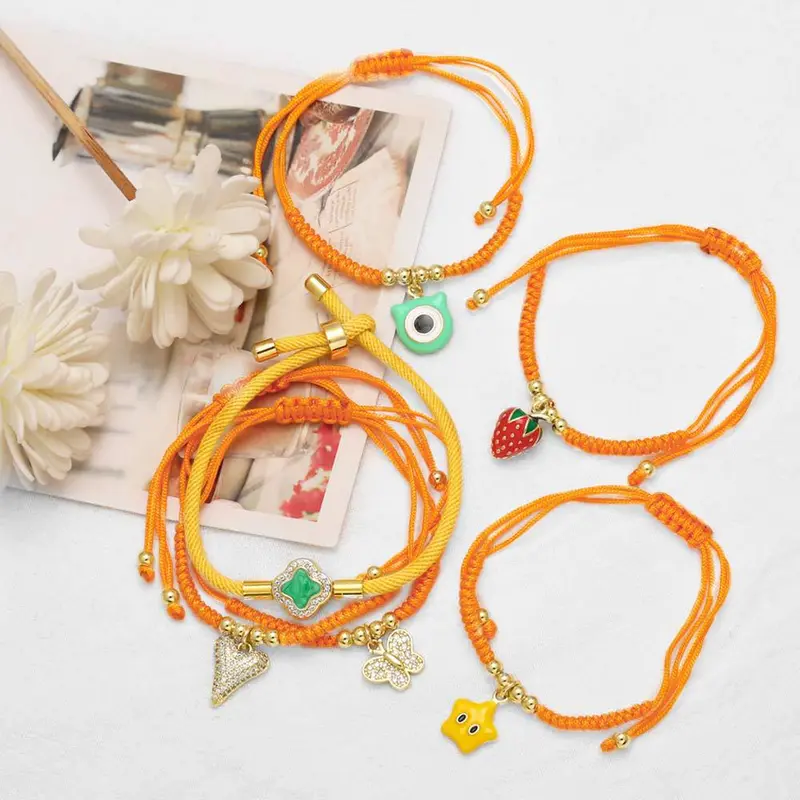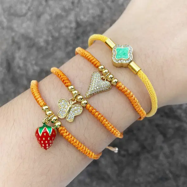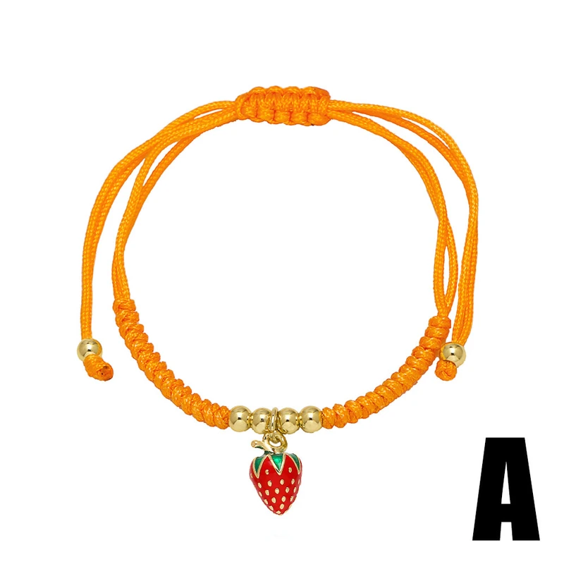 Bracelet pendentif cœur fraise étoile plaqué or, bracelet réglable, vente en gros, brg58